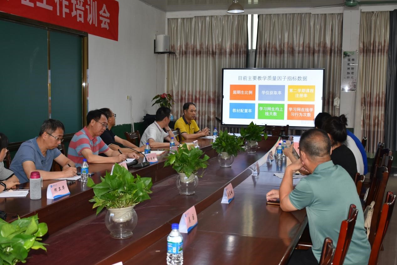 会议就教学、招生工作进行了培训和研讨。教学科研处吴继泉主任根据国开和省开文件精神,以“规范教学教务管理,有效提升教学质量因子”为题,结合课程思政和学生思政工作,对日常性、过程性和集中实践性等教学管理工作,以及考务、学籍和办证等教务管理工作等做出具体布置和要求,以全面提升全市开放大学整体办学质量和水平。招生办公室杜璇副主任传达了国家开放大学2023年秋季招生会议精神,总结全市办学体系春季招生工作情况,就规范招生稳中求进、精准服务项目拓展、体系联动做强系统等方面部署秋季招生工作,提出抓住改革机遇进一步做好全市开放大学2023年秋季的招生工作思路,并组织交流讨论。
